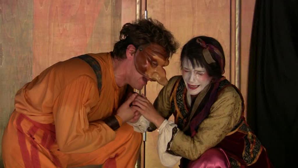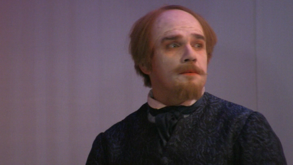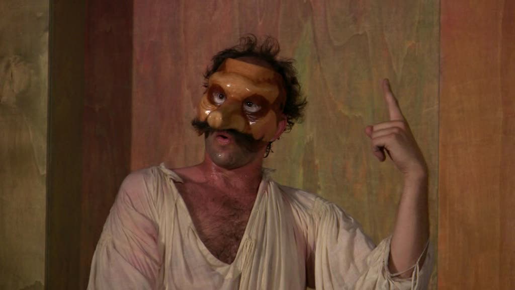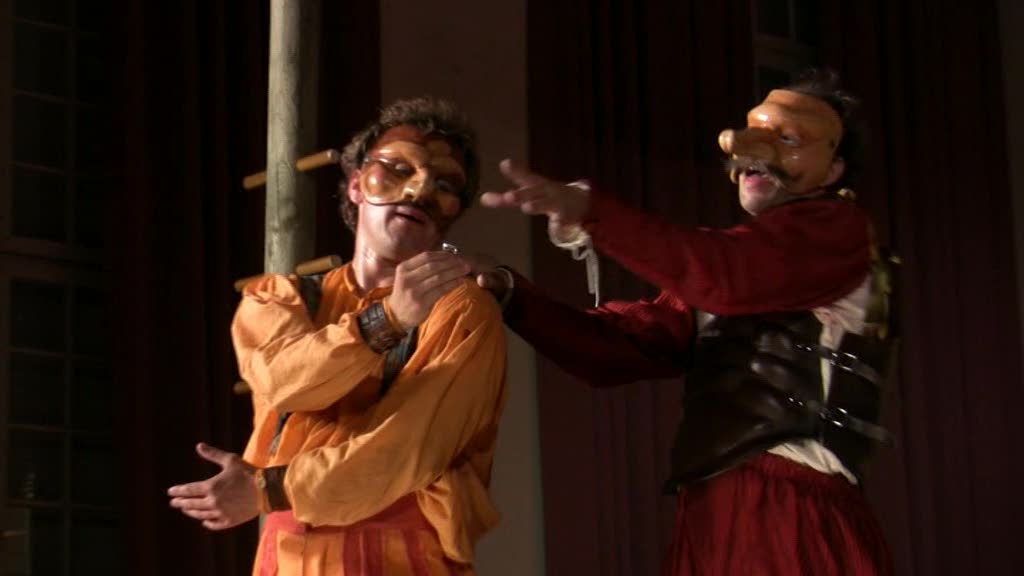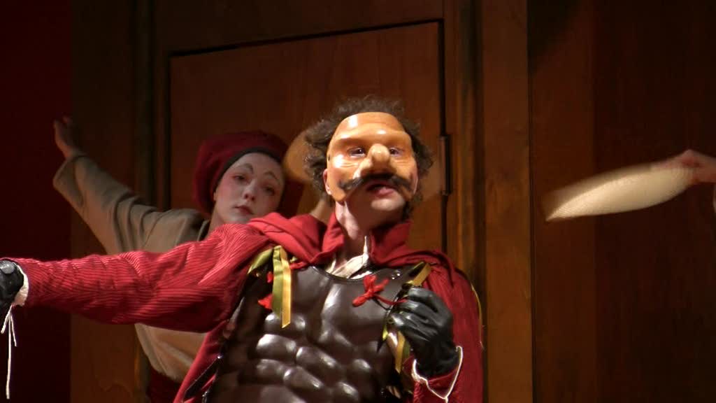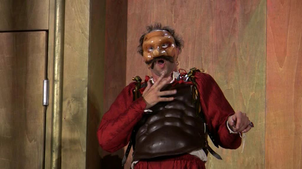 Ainsi tout regard qu’il jette sur le monde est-il faussé et ce qu’il perçoit n’est que la projection de lui-même – il rêve éveillé ! Perdant toute faculté de jugement, il devient vulnérable, un jouet entre les mains habiles de son esclave. Celui-ci, vif et rusé, sait pertinemment comment il doit servir son maître pour arriver à ses fins. Le soldat, flottant dans sa gloire, ne remarque rien et se rend ridicule.